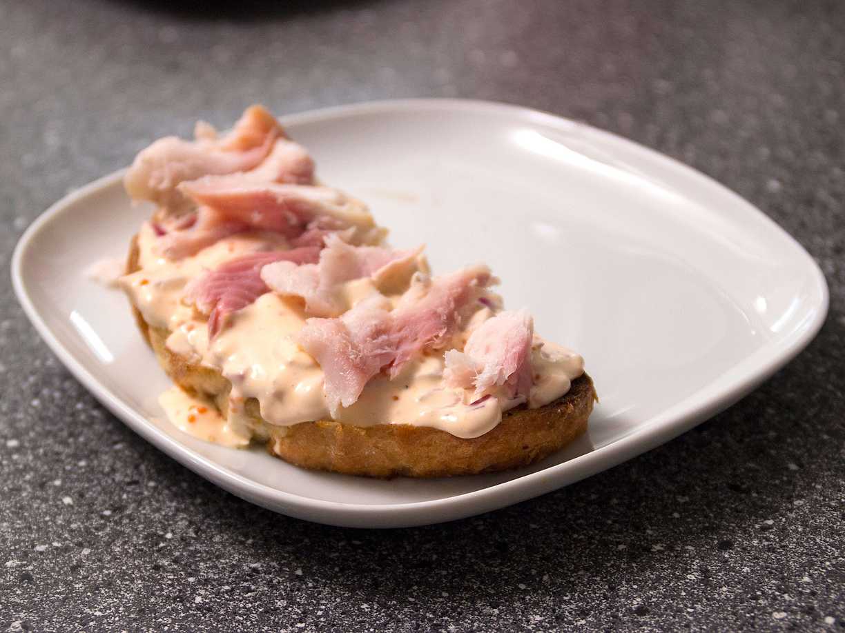 Rökt sik, med romröra, på smörstekt bröd