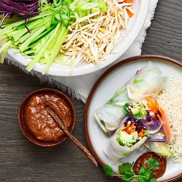 Rispappersrullar med cashewdipp