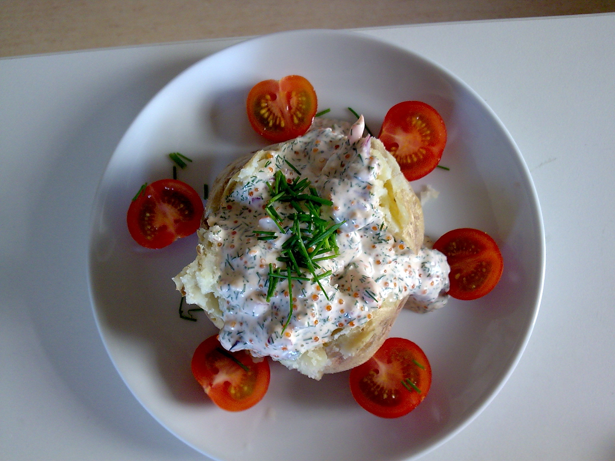 Krossad sesampotatis med het skagenröra