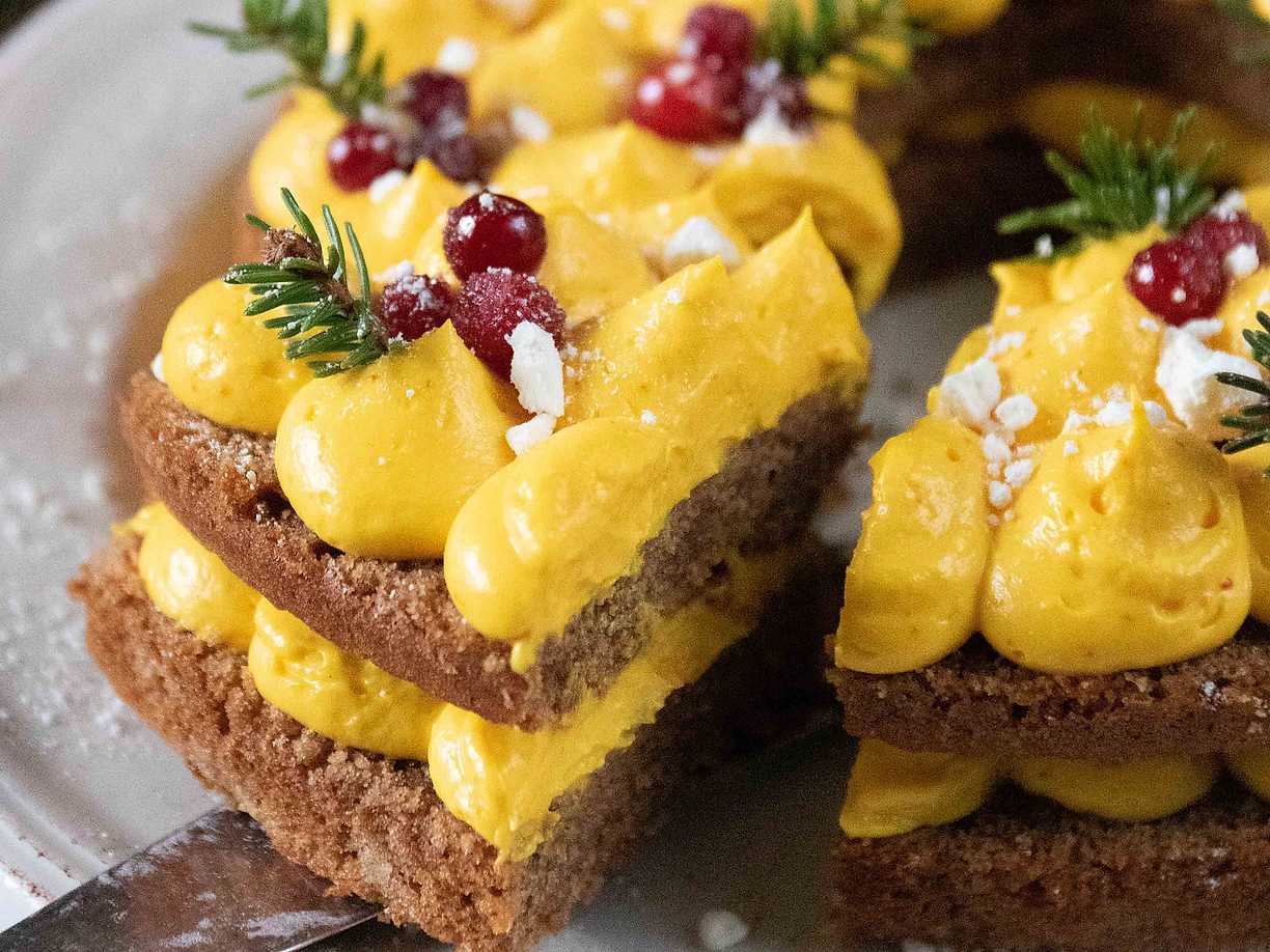 Pepparkakskrans med saffranskräm