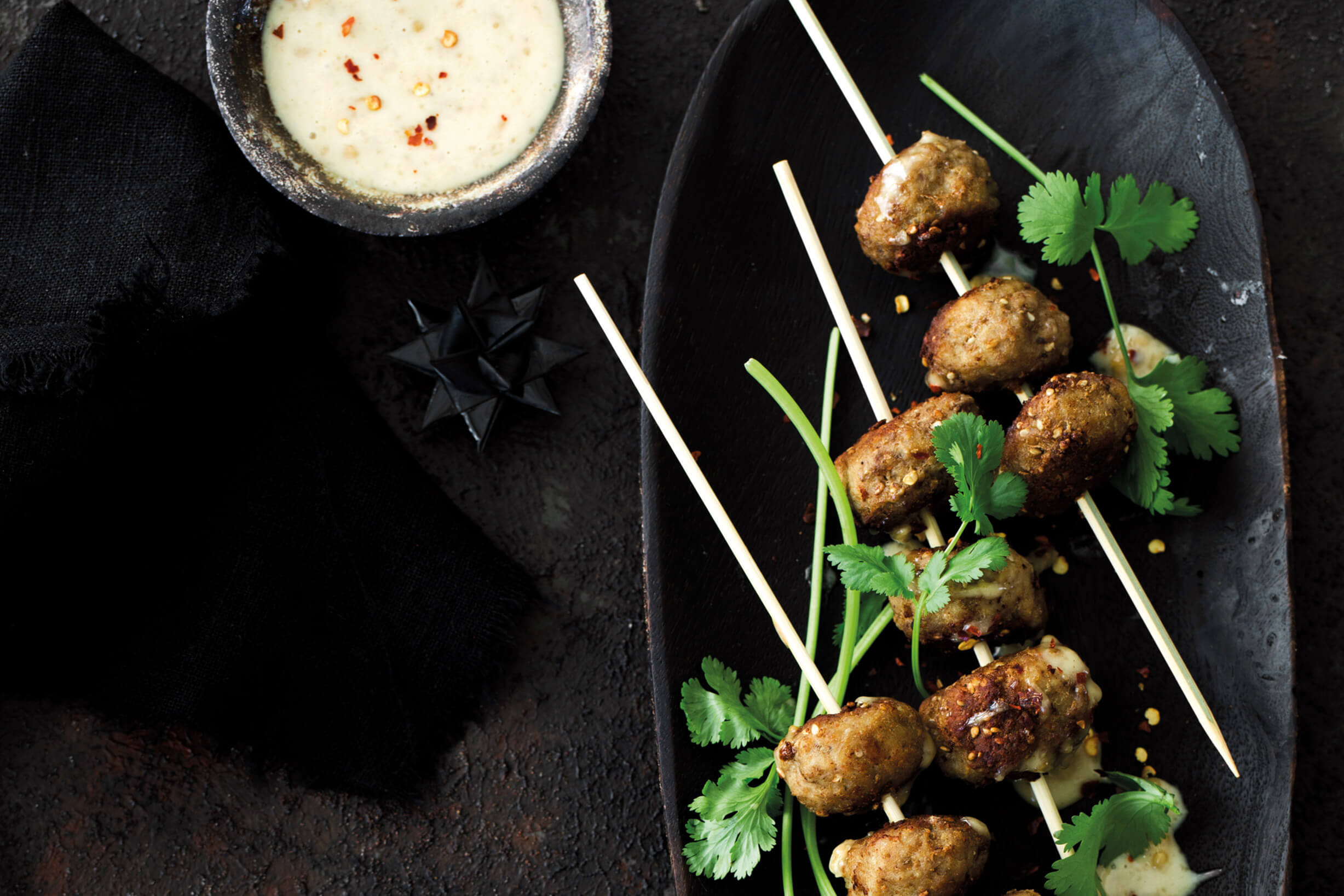 Kycklingköttbullar med jordnötsdipp