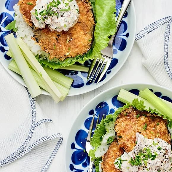 Panerad spättafilé med äpple-och currydipp