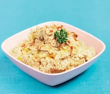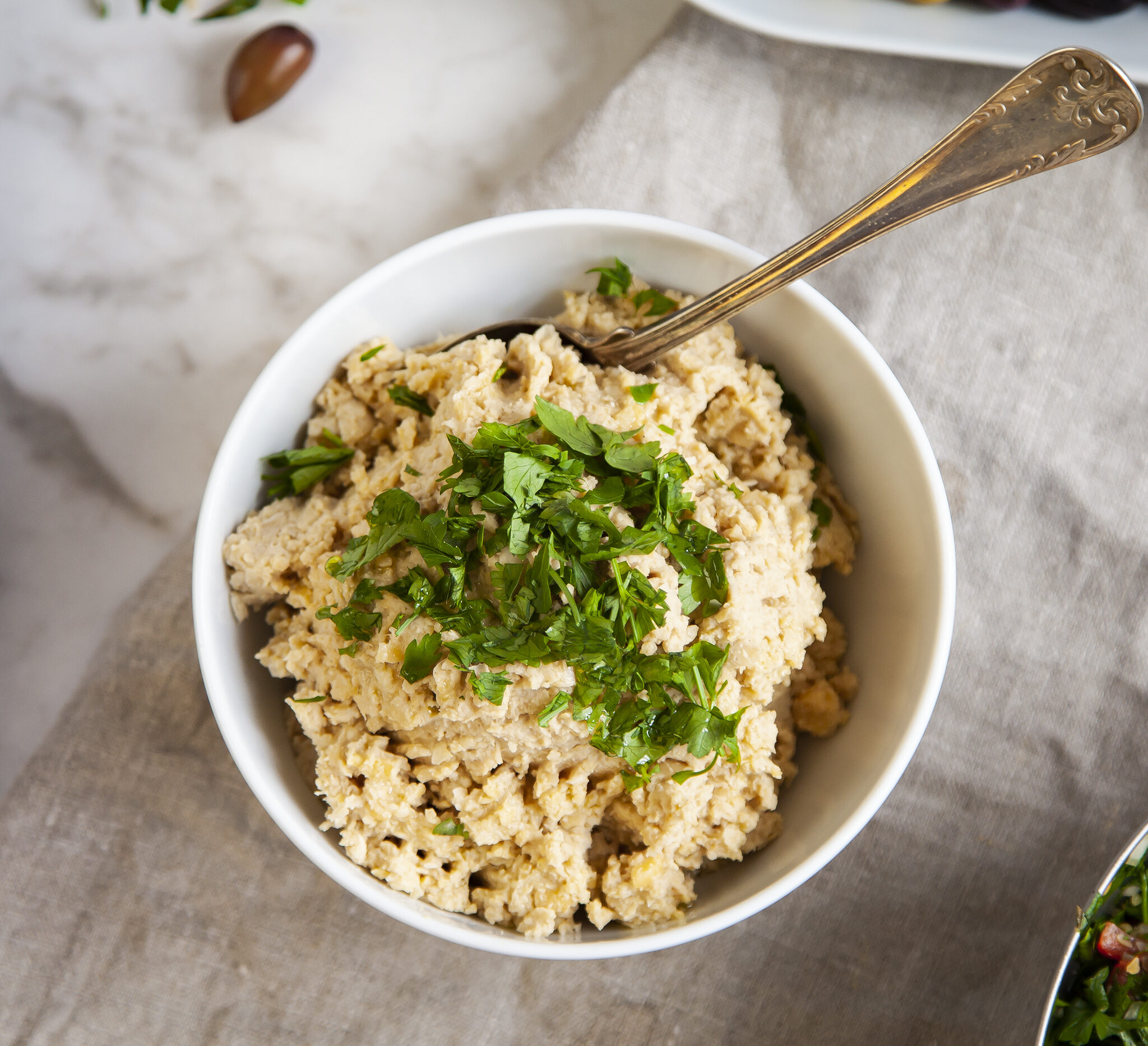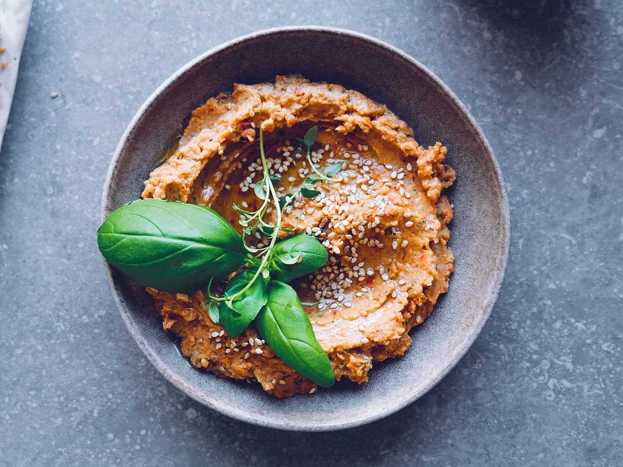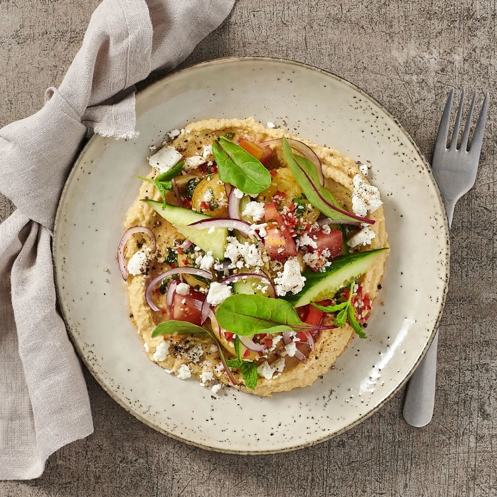 Omelettrulle med hummus och paprikamarinerad kyckling