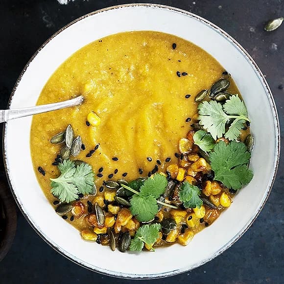 Rostad majs- och sötpotatissoppa