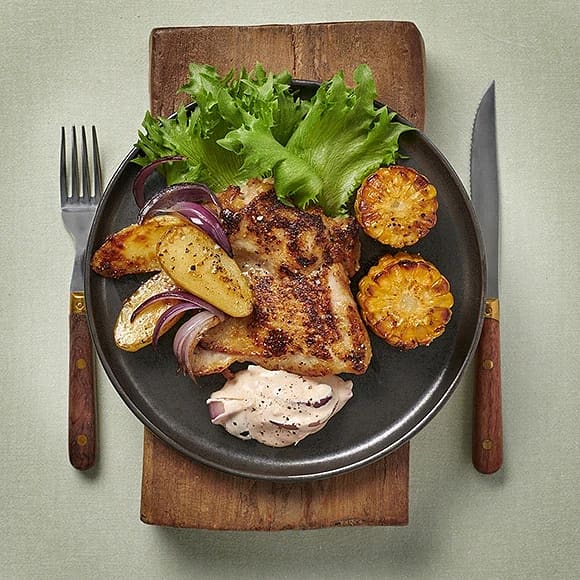 Kycklingsteak med rostad majs och potatis