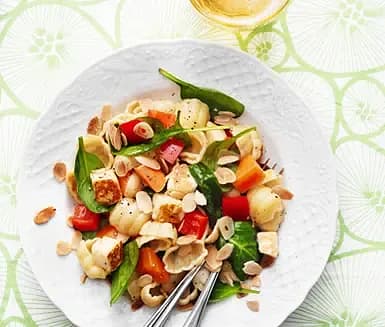 Halloumipasta med rostad mandel