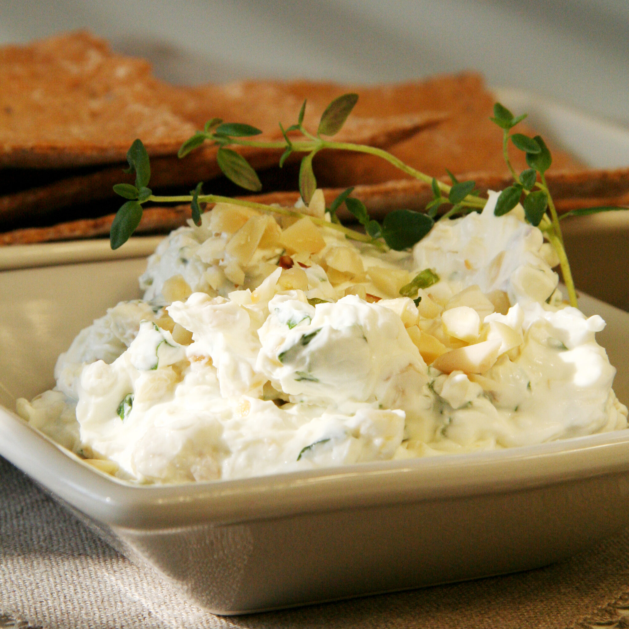 Färskost med rostad mandel och basilika