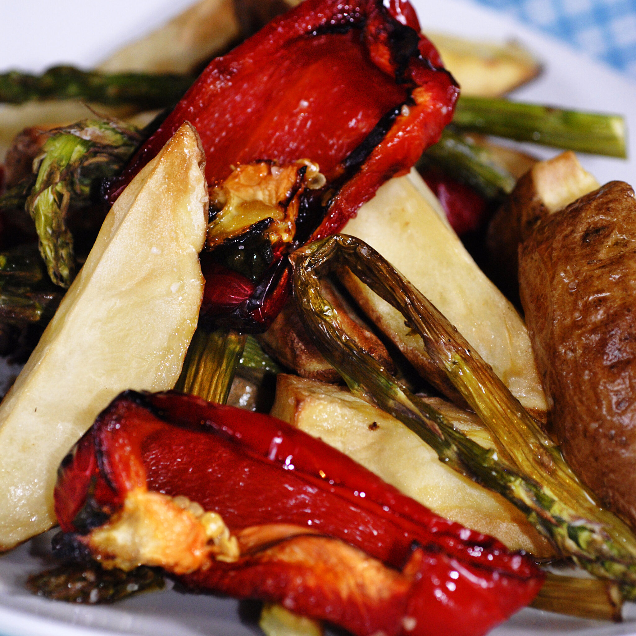 Sesamtofu med rostade rotfrukter och rostad vitlöksmajonnäs