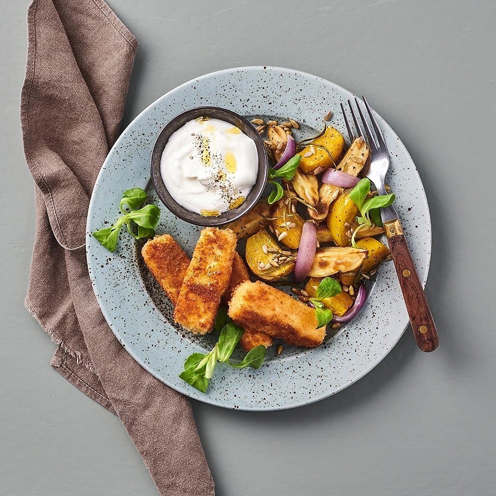 Rostade gulbetor med krispiga oststicks