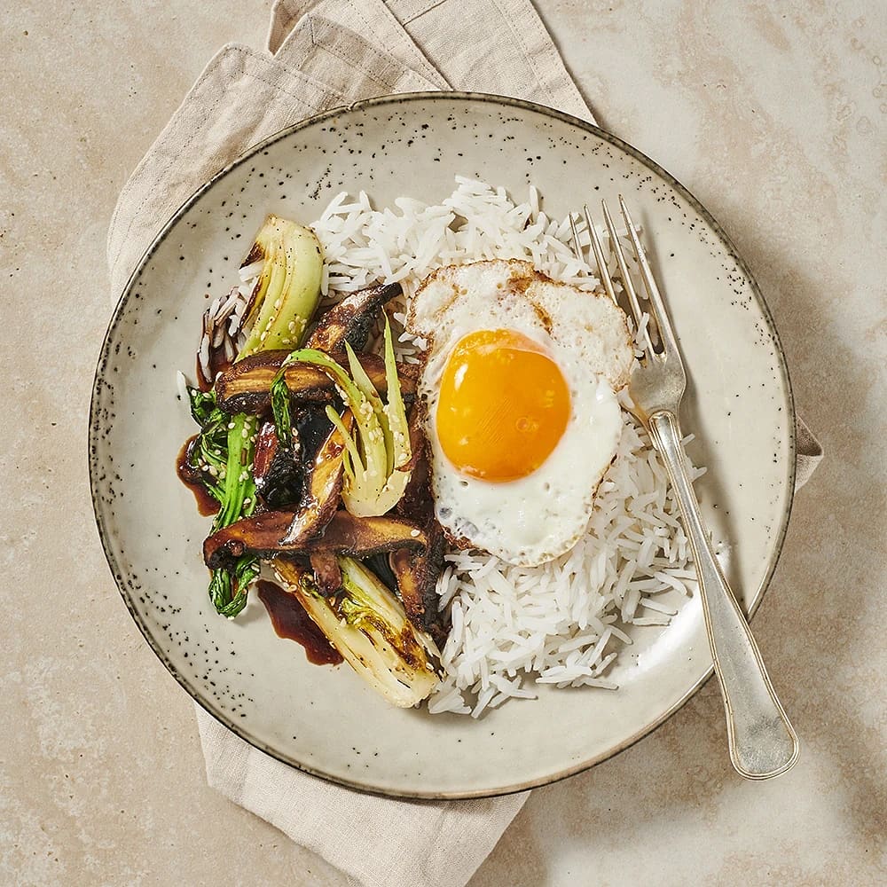 Portabelloteriyaki med rostad pak choi