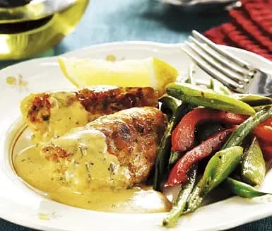 Rostade rotfrukter med kyckling och dragondipp