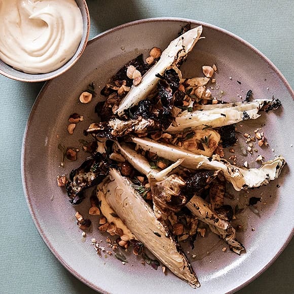 Spetskål med rostade hasselnötter och brynt smör-majonnäs