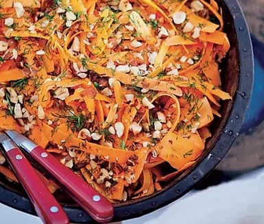 Morotssallad med rostade hasselnötter