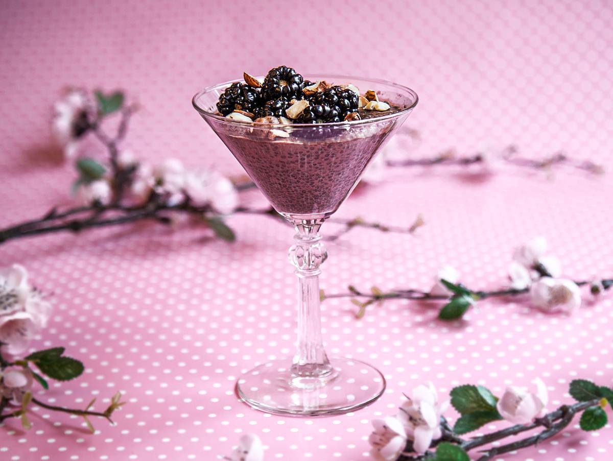 Chiapudding med kakao och rostade hasselnötter