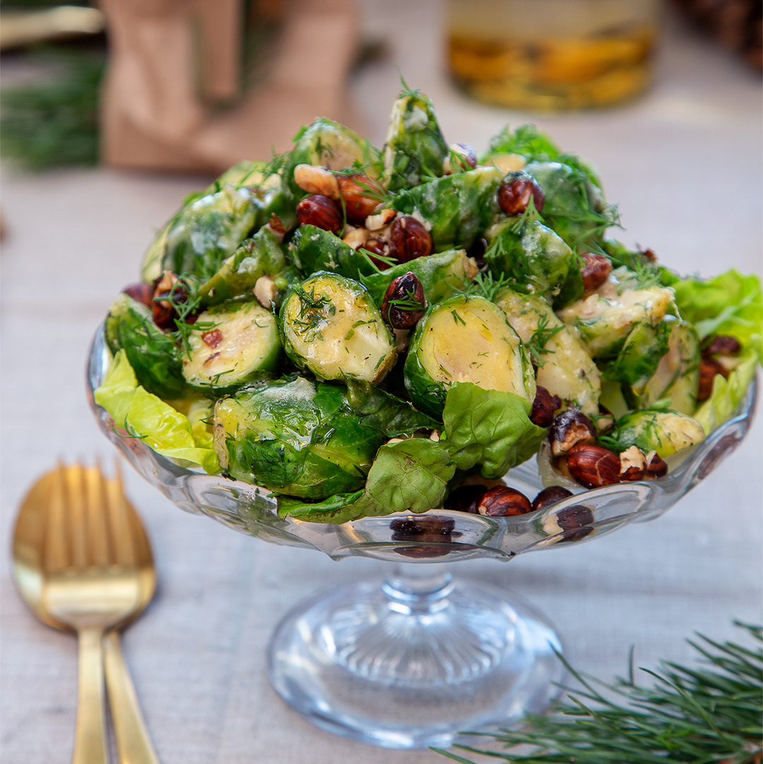 Brysselkålssallad med brynt smör och rostade hasselnötter
