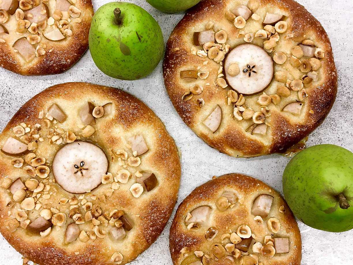 Karlsbaderbullar med päron och rostade hasselnötter