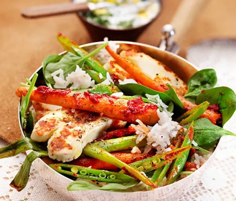Harissahalloumi med rostade morötter