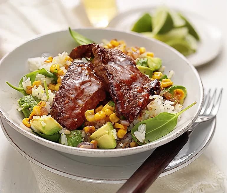 Rostbiff med rostad rispanna och avokado