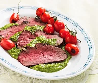 Helstekt rostbiff med hemgjord pestosås