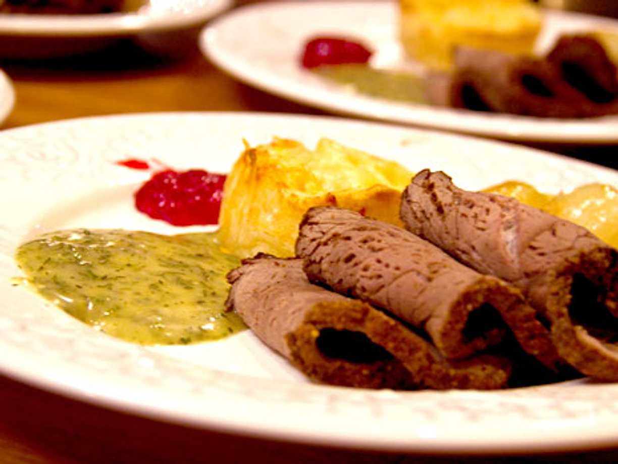 Kanelkryddad rostbiff med potatisrulltårta
