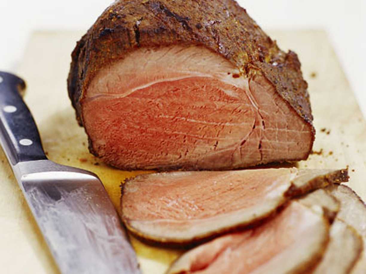 Långbakad och grillad rostbiff med kryddrubb