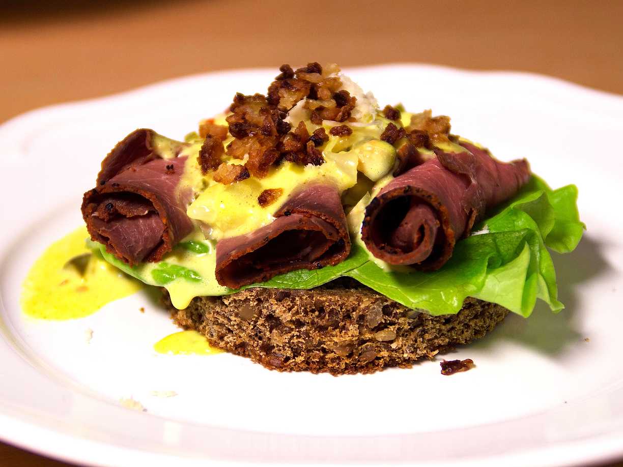 Rostbiff på smørrebrød på danskens vis