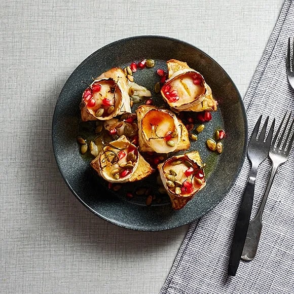 Smördegsflarn med rotselleri, crème fraiche och fetaost