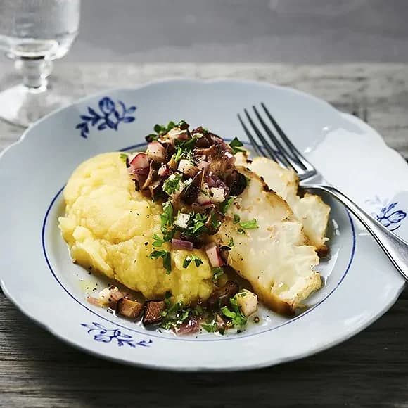 Ugnsbakad torskrygg med rotselleri och höstsvamp
