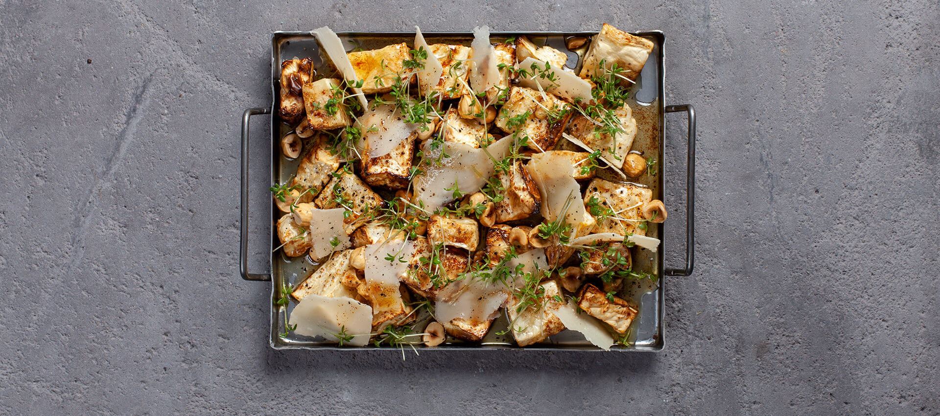Helstekt rotselleri med valnötter, parmesan och tryffel