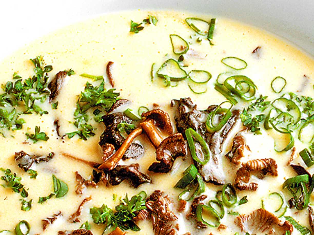 Rotselleri- och jordärtskockssoppa med svamp och pepparrot