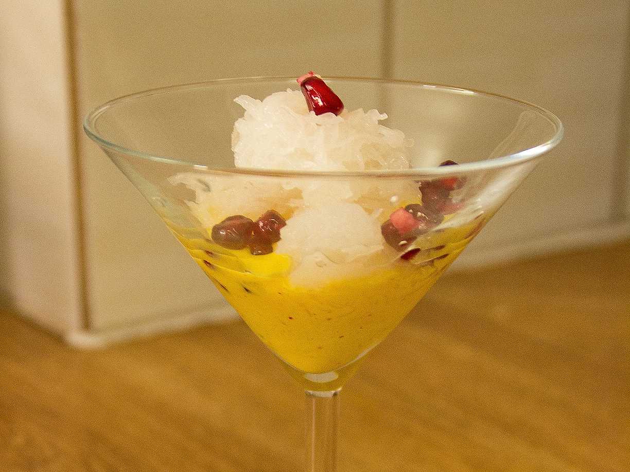Falode, frysta risnudlar med saffransglass och rosenvatten