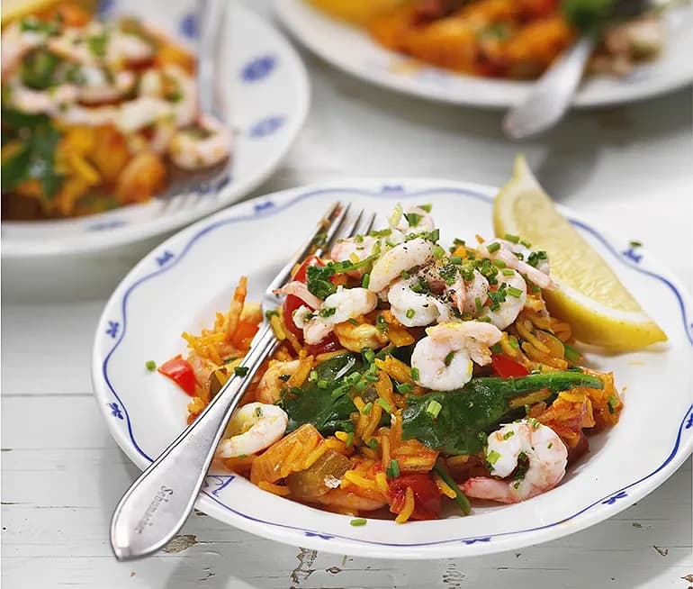 Heta räkor med saffransris