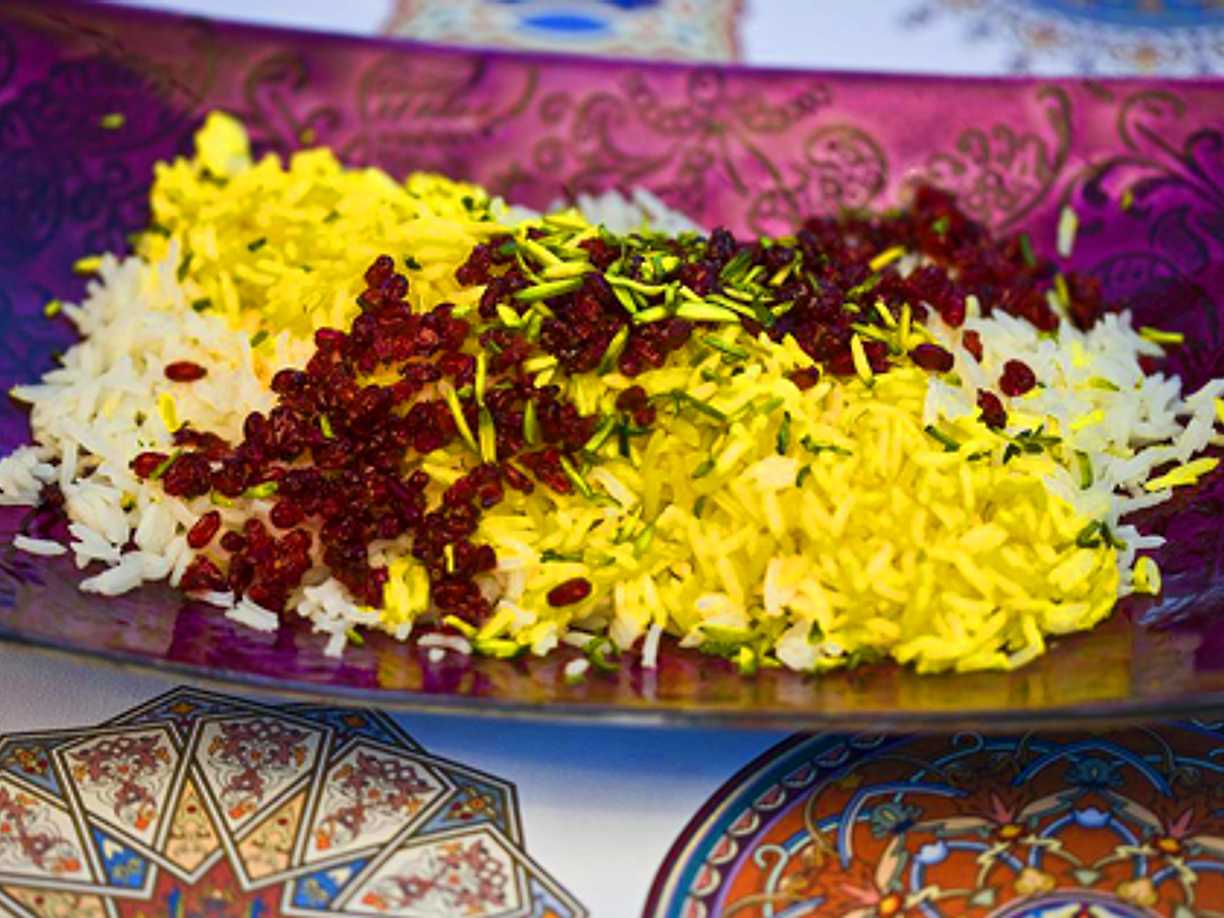 Saffransris och berberis eller torkade tranbär