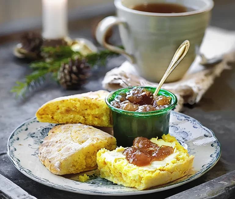 Saffransscones med färskost och blåbärssylt