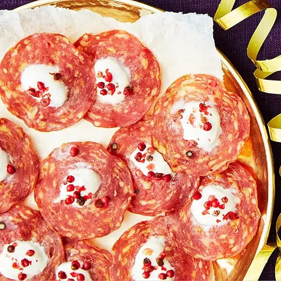 Krispiga salamichips med Gorgonzola