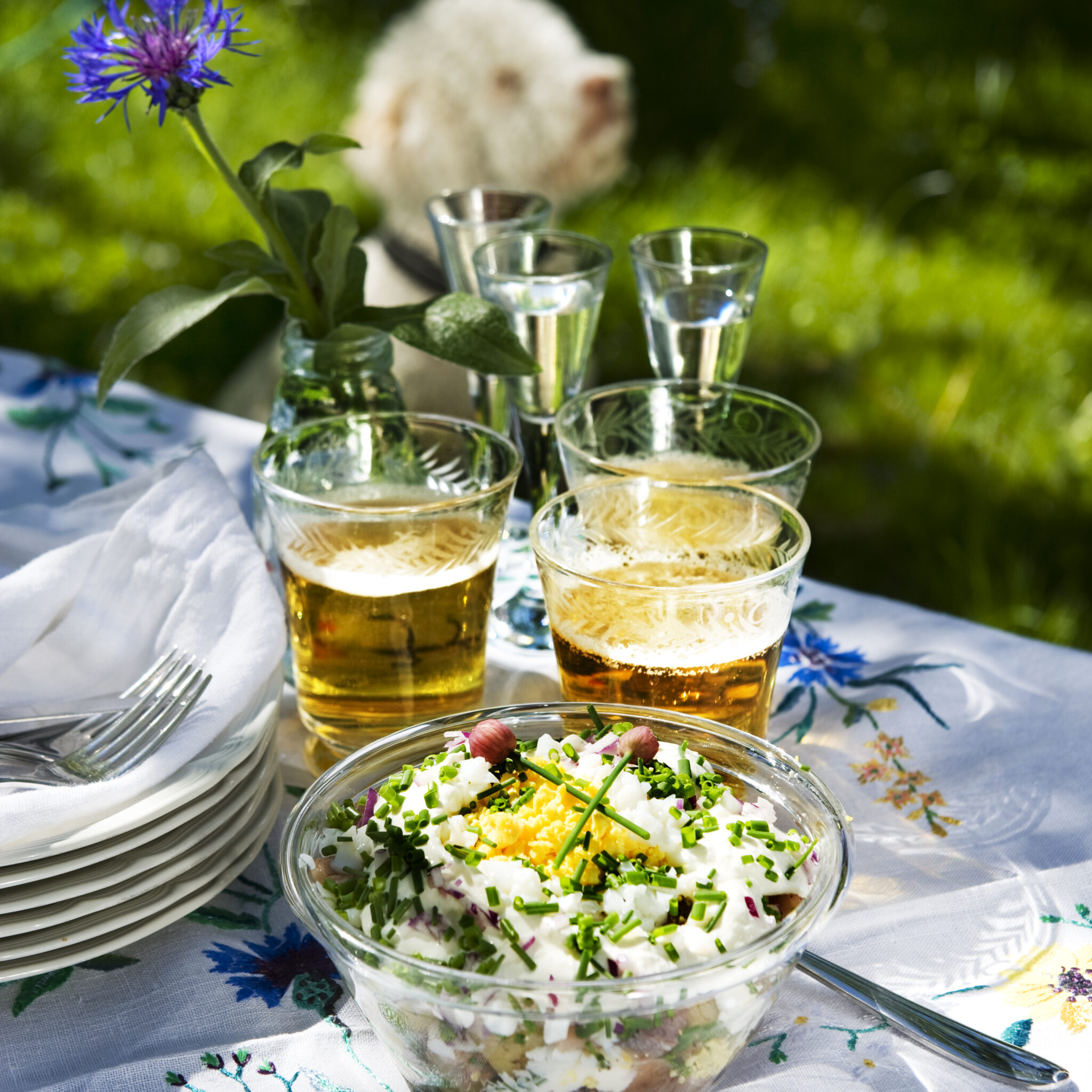 Potatissallad "double fun" med kallrökt lax och persiljemajonnäs