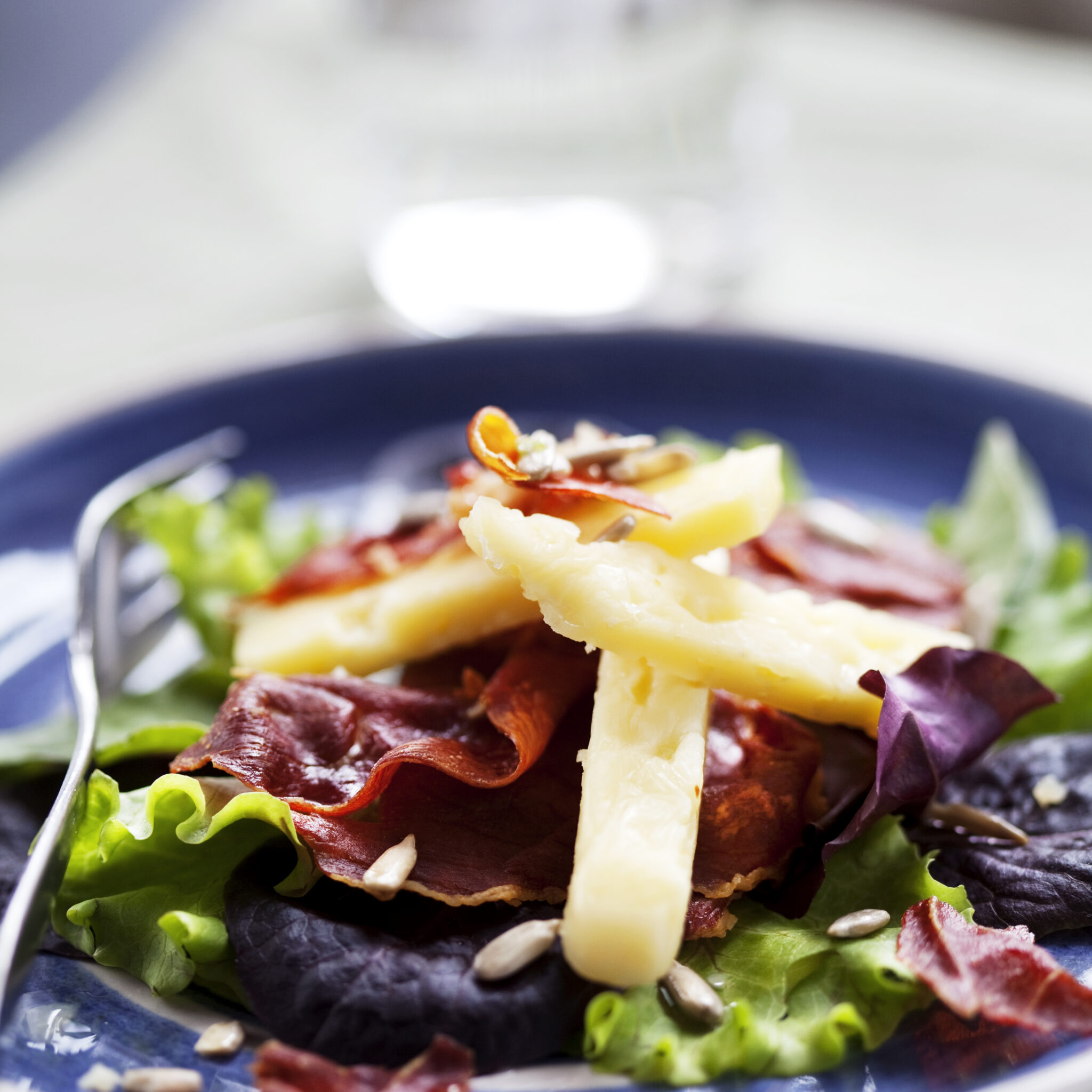 Blandsallad med Waldeckerchips och Västerbottensoststavar