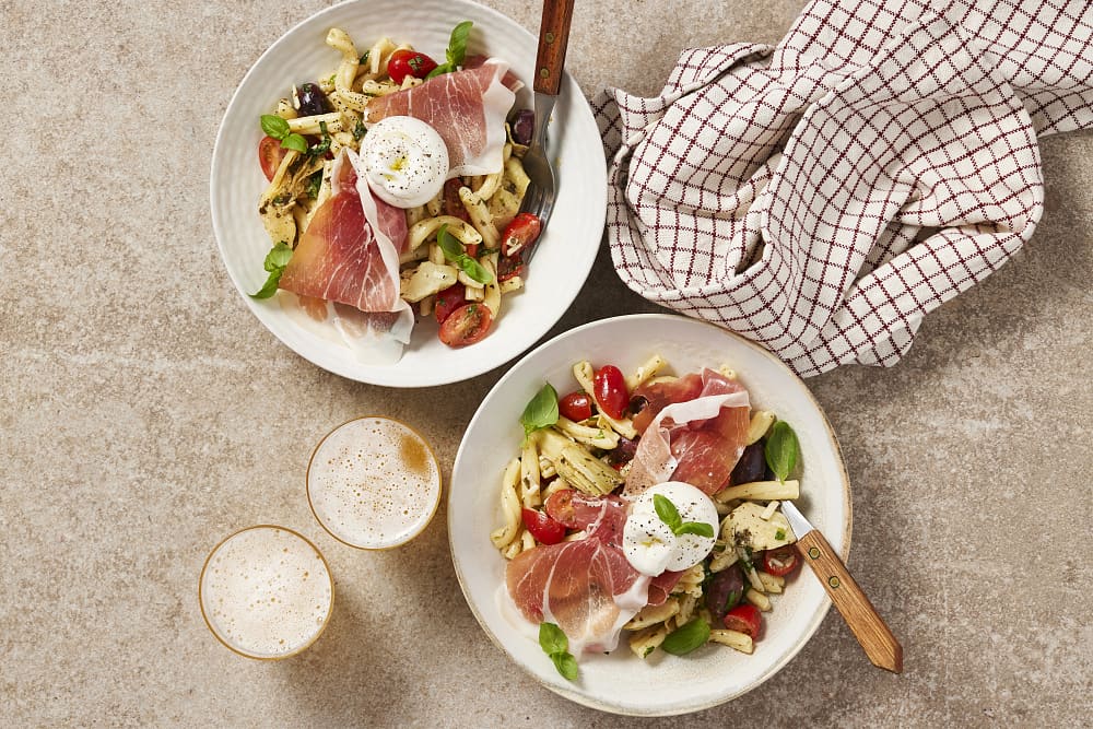 Pastasallad med kronärtskockor och burrata