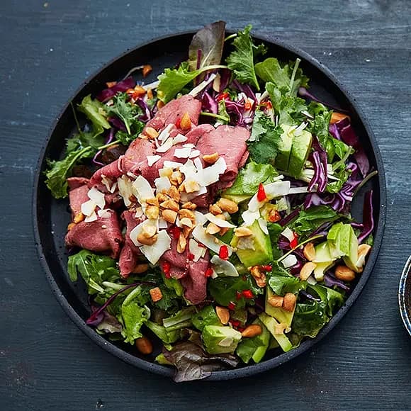 Asiatisk rödkålssallad med rostbiff