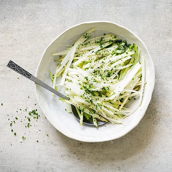 Krispig sallad med kålrabbi och päron