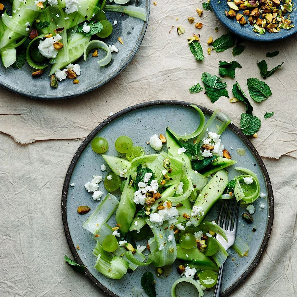 Gurksallad med vindruvor och fetaost