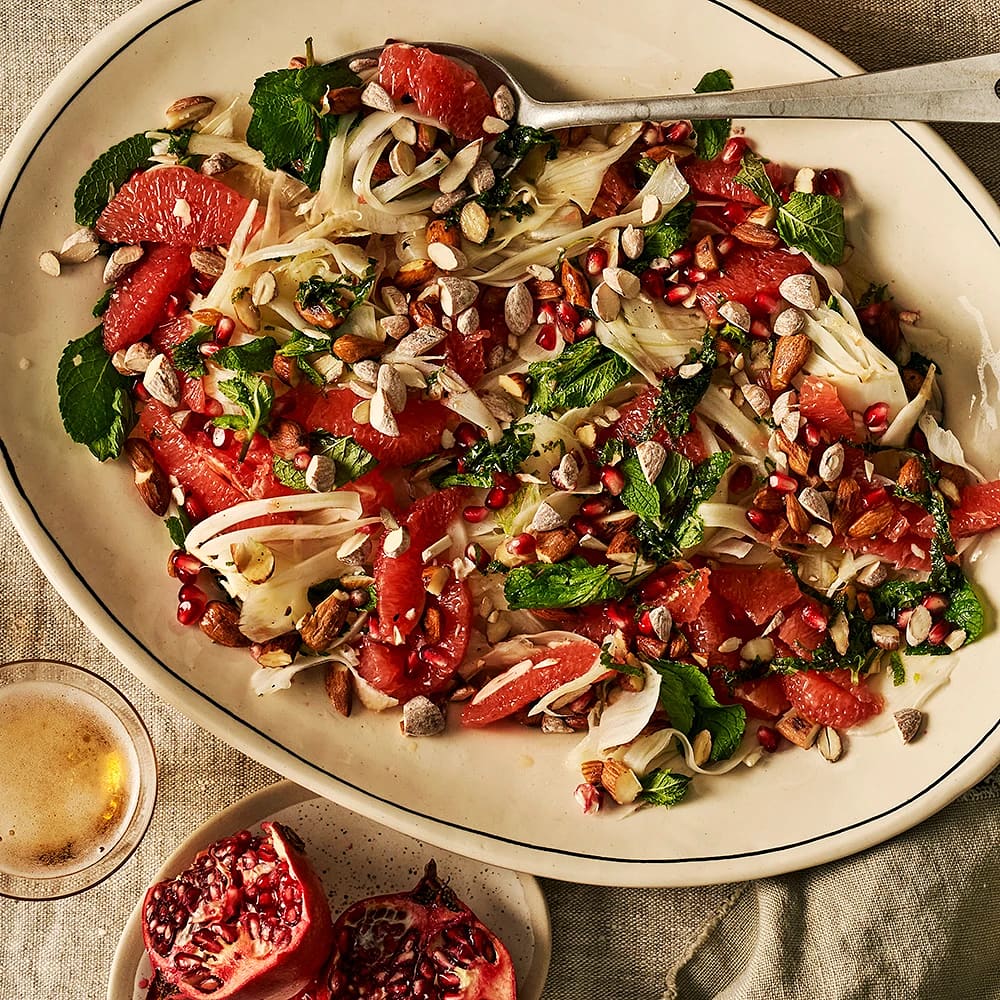 Julsallad med granatäpple och saltrostad mandel