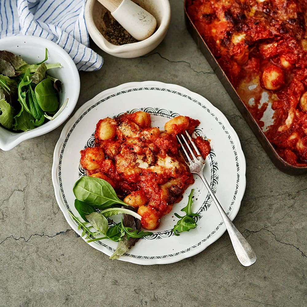Gnocchi alla sorrentina med sallad