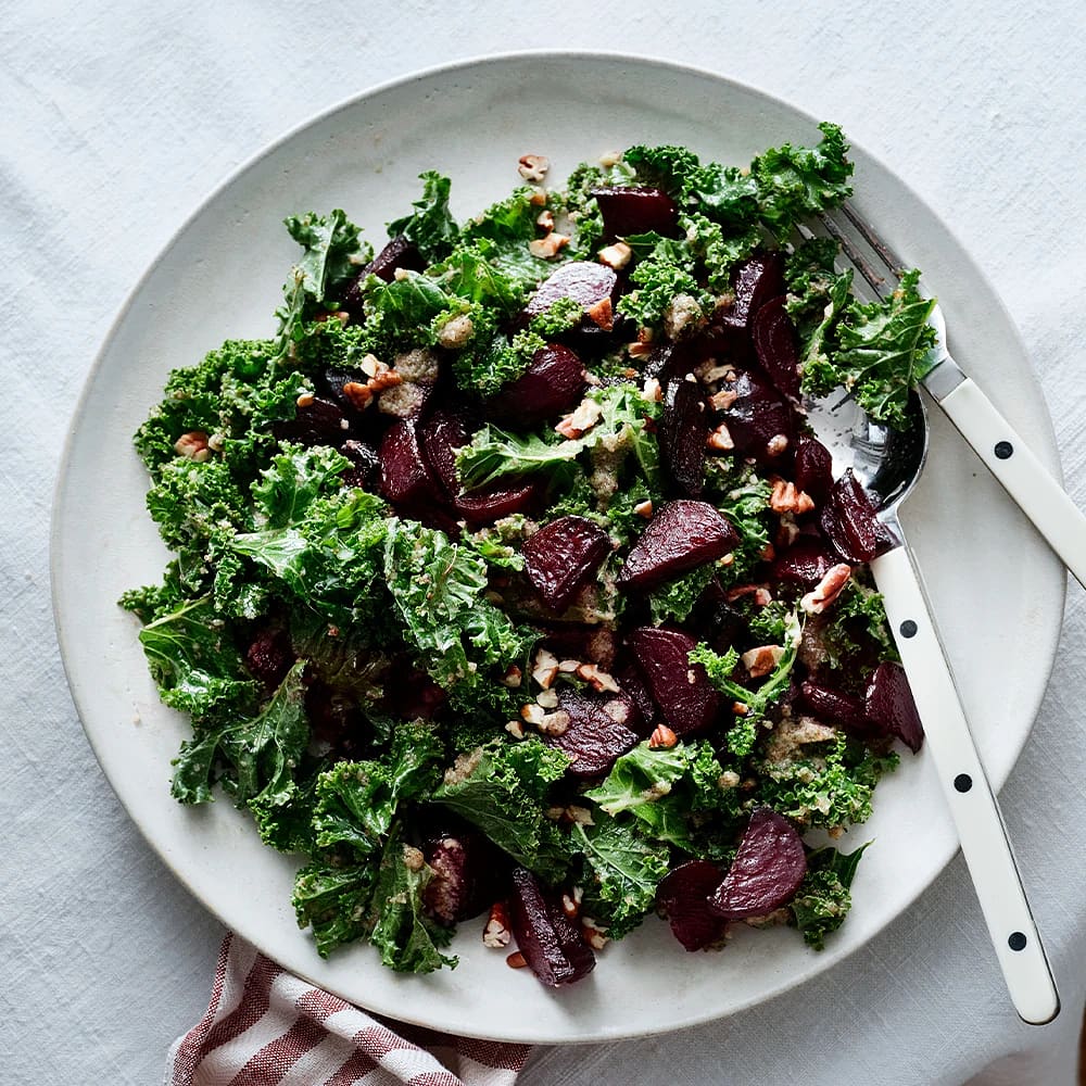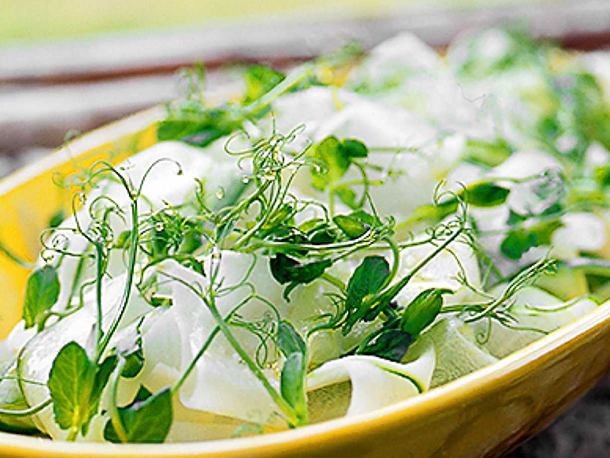 Grönkålssallad med rotselleri, äpple och parmesandressing