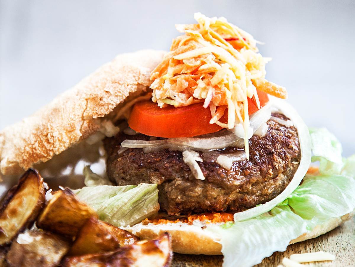 Ulrika brydlings organic henburger med coleslaw och rostad paprikasås