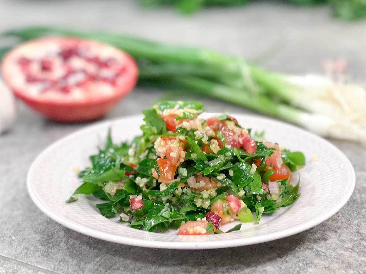 Rostad grönsakssallad med fetaost, avokado och granatäpple