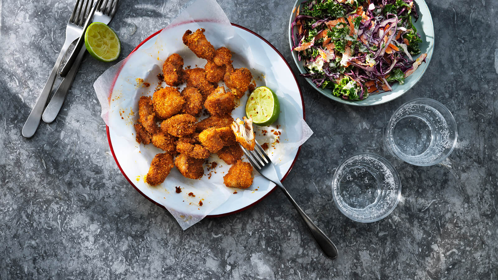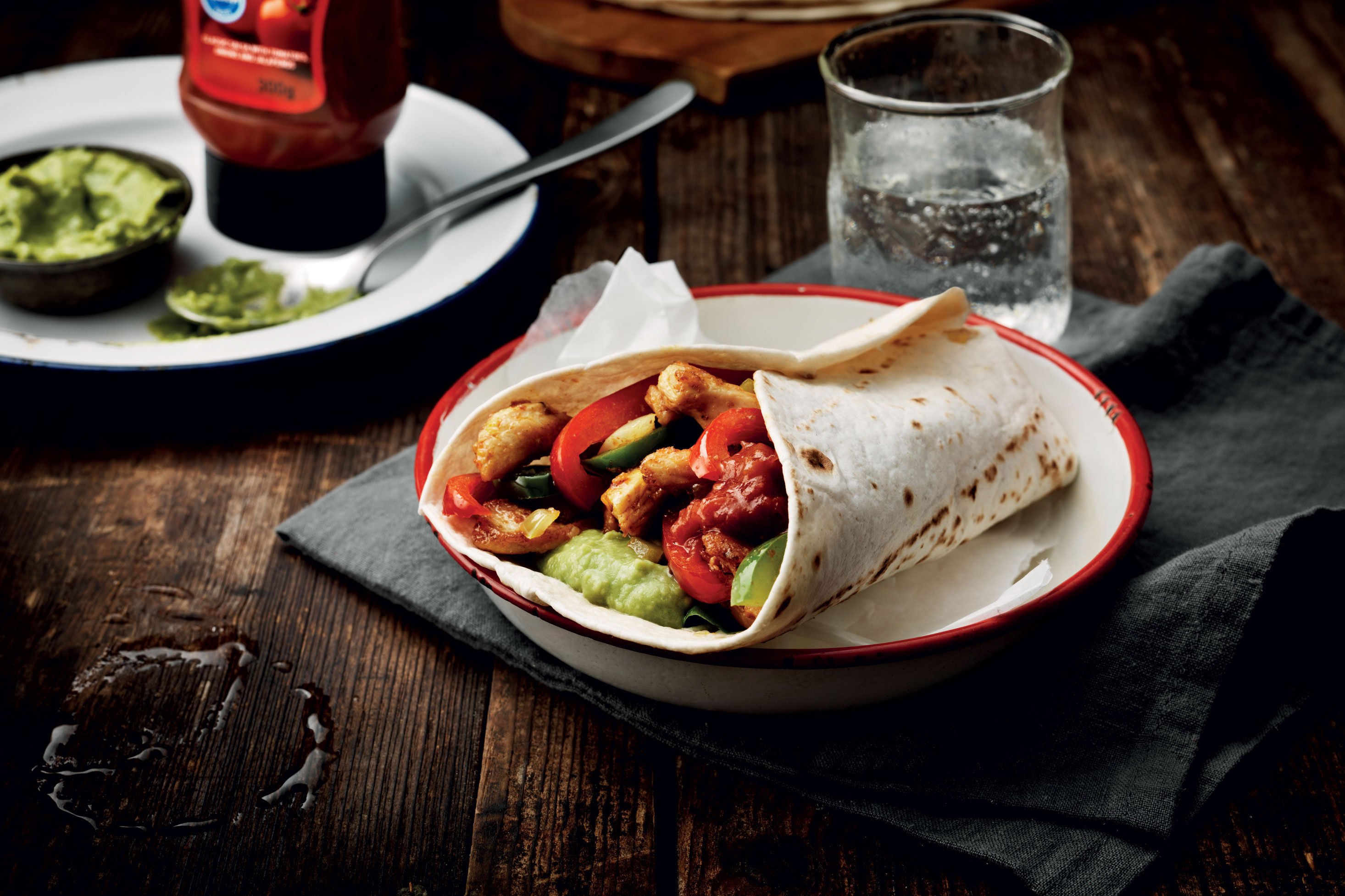 Pulled chicken med fruktig sallad och hemgjord chilisås