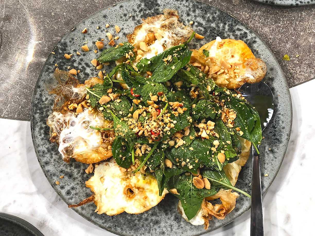 Friterat ägg med thaisallad