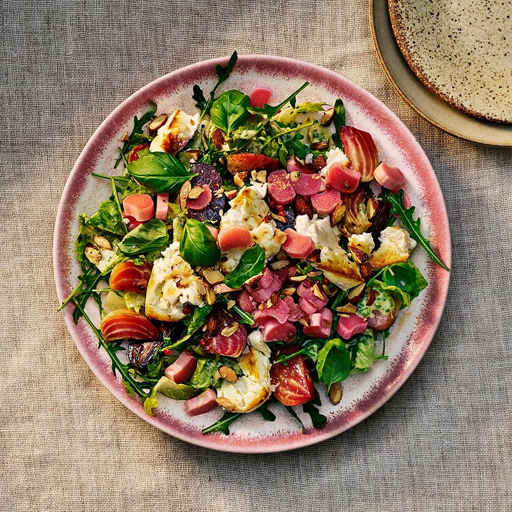 Getostsallad med rödbetor, pinjenötter och balsamvinäger