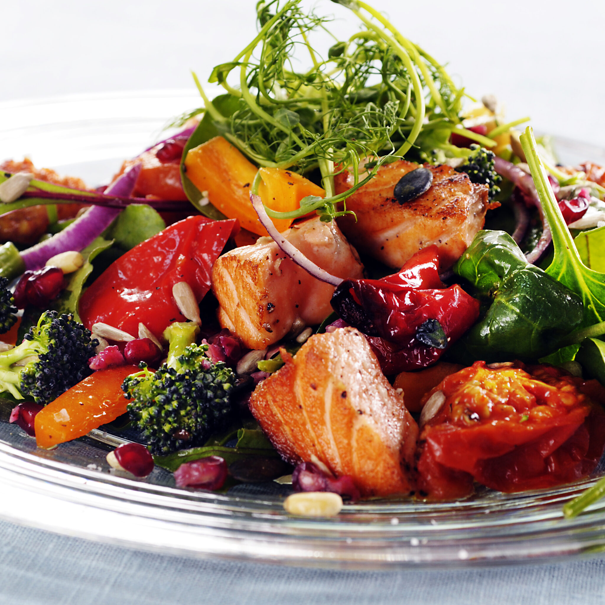 Italiensk kycklingsallad med grillade grönsaker och parmesan